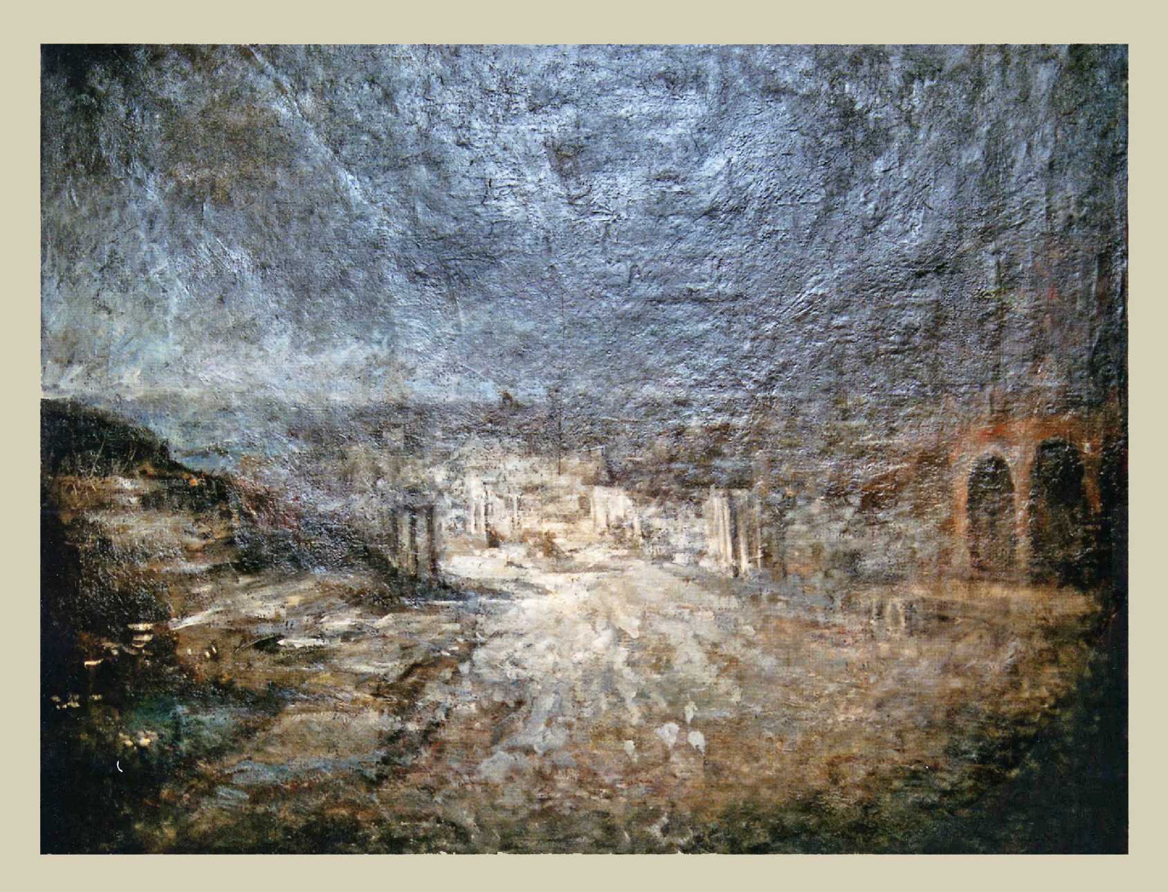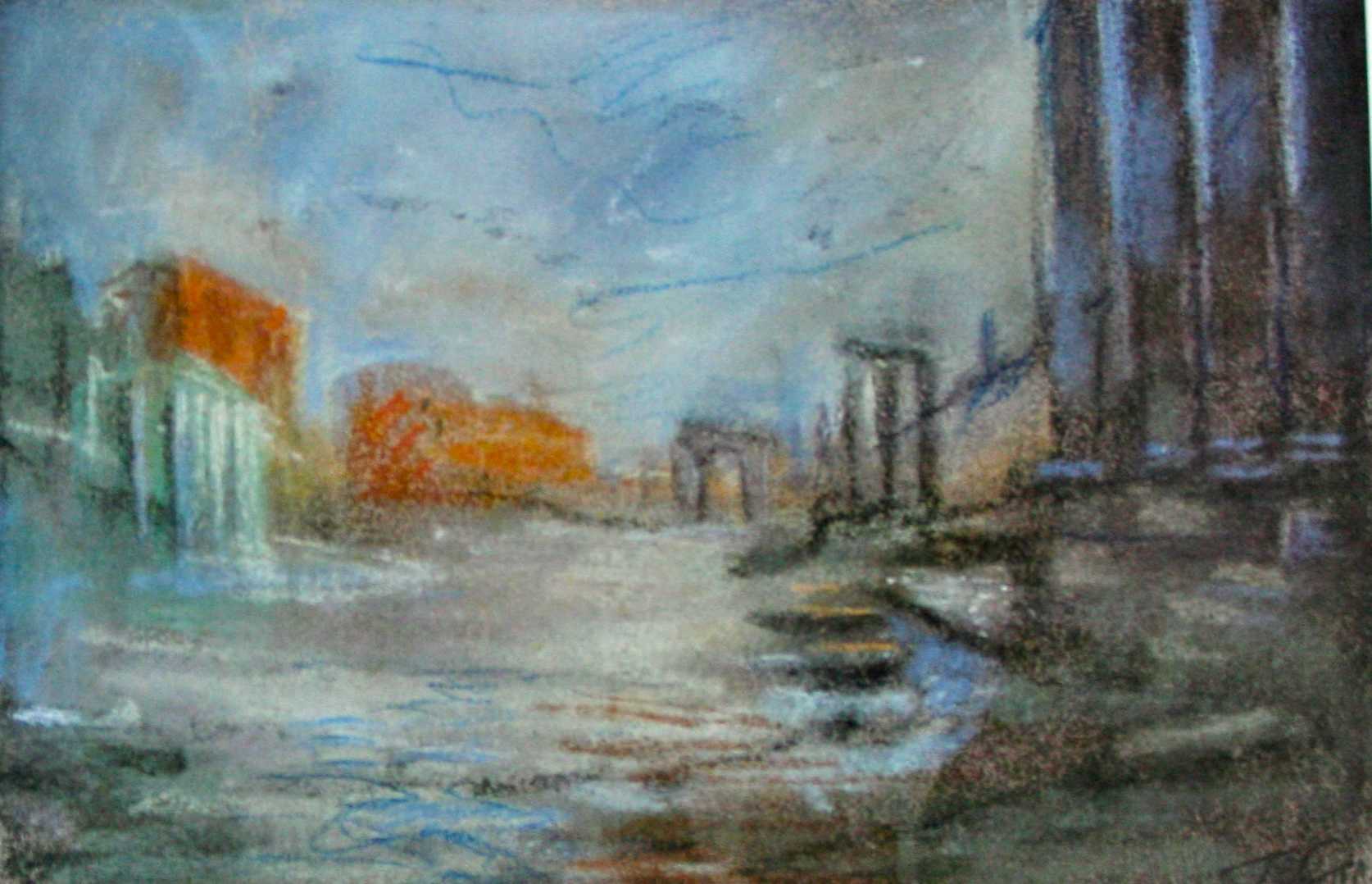 "Forum Romanum bij maanlicht" is severly damaged by water. The work